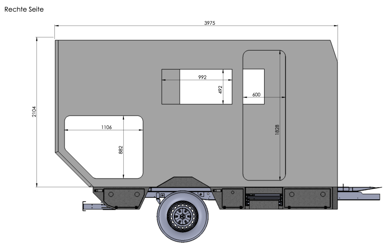 So soll die Kabine einmal aussehen. Auf der Zeichnung ohne Fahrgestell.