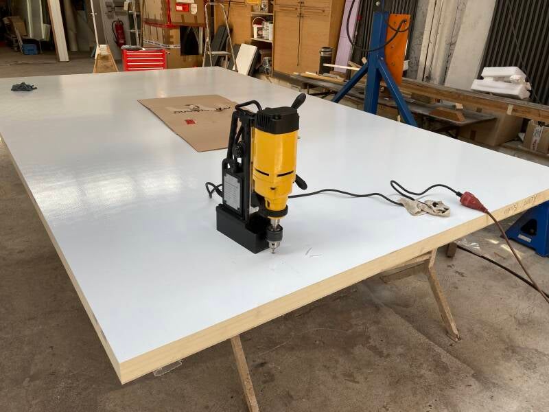 Der Bau der Kabine beginnt, die Seitenwände, Decke und der Boden werden zugeschnitten.