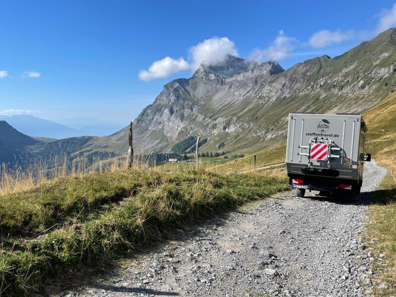 Für Tante Inge waren die Schotterstraßen mit teilweise 15% Steigung kein Problem (mit zugeschalteten Allrad und Untersetzung). Für unsere Umweltschützer: Ich bin keine gesperrten Straßen gefahren und habe in Naturschutzgebieten nicht übernachtet.