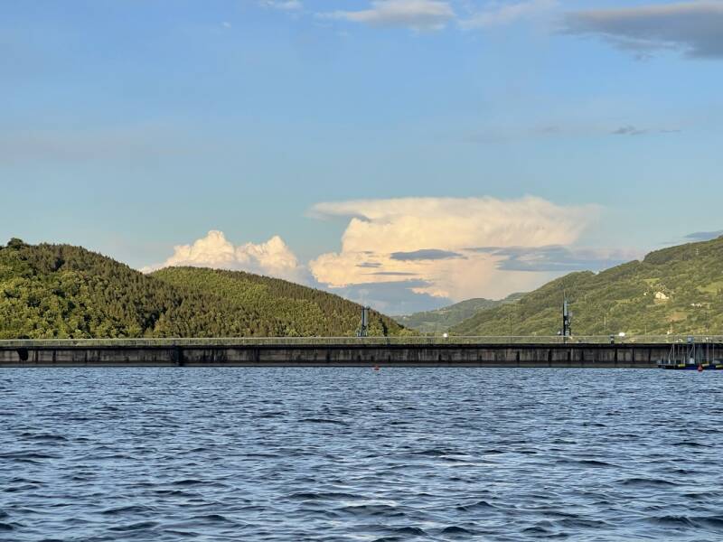 Am Stausee ist nicht viel Platz (enges Tal) aber ich kann mich an den schmalen Landsteifen über Nacht hinstellen. Wieder einmal bekomme ich die Gastfreundschaft zu spüren. Ich weis noch nicht wie ich hier morgen wieder rauskommen soll (Spitzkehre mit Höhenunterschied) . Mir wird schon etwas einfallen damitmir Tante Inge nicht umfällt.