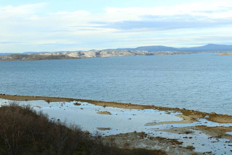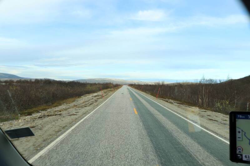 Also erst einmal geht es auf der E6 durch beeindruckende Landschaften. Wie mag es hier Sommer aussehen wenn alles grünt. Vor wenigen Tagen in Finnland war noch Herbst mit wunderschönen Farben, Hier ist der Herbst schon vorbei, ab November liegt Schnee. Der übrigens festgefahren wird (nix Salz), mit Spikes Reifen (in D. verboten) kann man dann prima fahren. Man kann sich auch vor Ort Spikes in die Winterreifen machen lassen. Aber nicht mehr aus. Die Reifen sind dann hin,