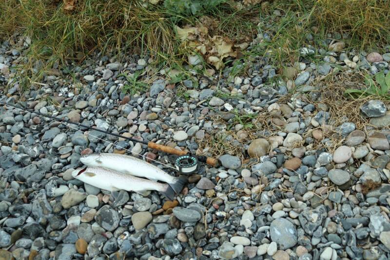 Mit dem Angler komme ich noch ins Gespräch. versuche mich auf Englisch. Er antwortet auf Sächsisch das er aus Chemnitz kommt und ich ruhig deutsch reden Er hat nach DK geheiratet. Geangelt hat zwei große Seeforellen., relativ selten sagte er.