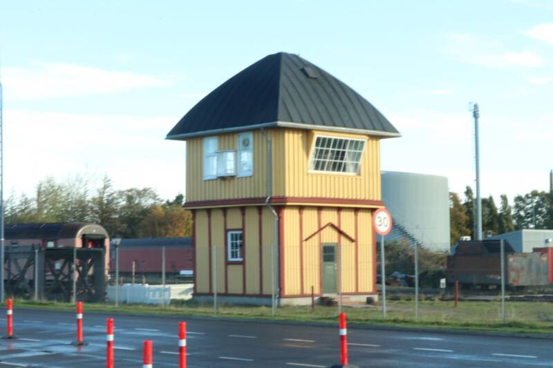 Die nächste Überraschung. Das Stellwerkhäuschen. Es ist die Originalkulisse von: "Die Olsenbande stellt die Weichen." Stand ursprünglich in Kopenhagen und wurde vor dem Abriss gerettet.
