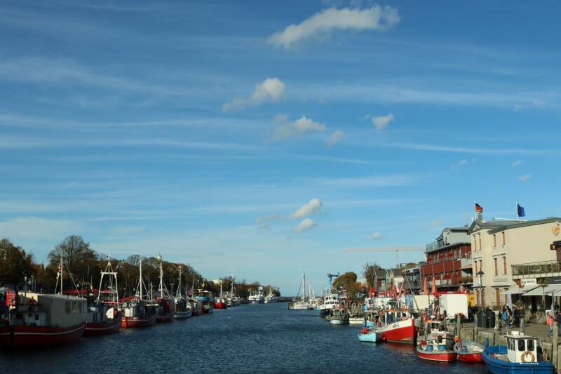 Ein Parkplatz ist schnell gefunden und ich bummle am alten Hafen in Warnemünde.