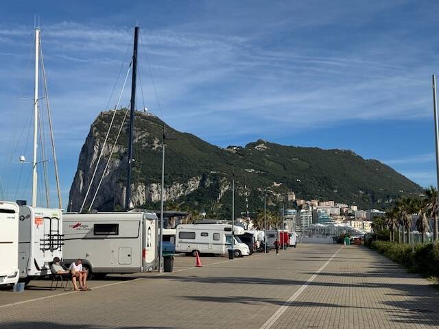 Auf Spanischer Seite gibt es im Hafen einen großen Wohnmobilstellplatz. Von hier kann man, wenn man eine gute Kondition wie ich hat, bequem nach Gibraltar laufen.