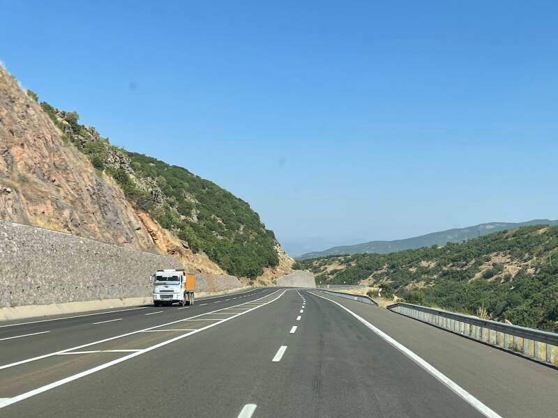 Es geht den ganzen Tag über vier spurige Straßen, Hin und wieder Baustellen. Es staubt tüchtig.