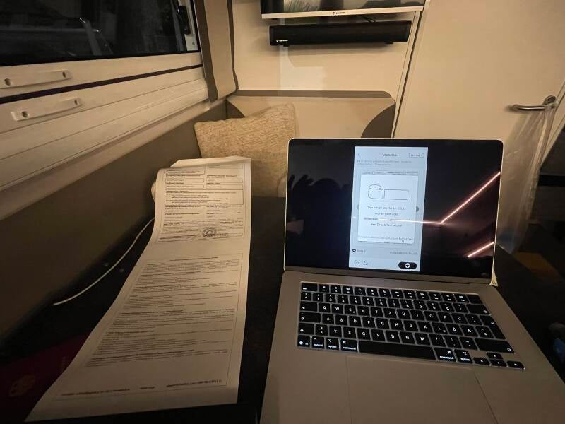Ich habe einen kleine Thermodrucker mit (kostet ca. 30€) und kann mir