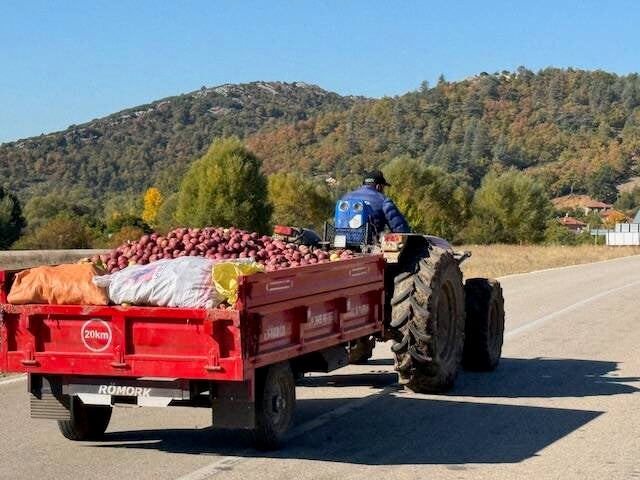 Die Äpfel werden nach Farben sortiert. Während ich fotografiere kommt ein Bauer und schenkt mir jede Menge Äpfel. Die reichen jetzt bis zum Ende der Tour.