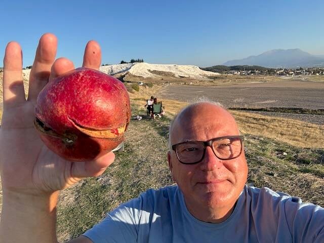Von meinen türkische Camping Nachbarn bekomme ich einen Granatapfel geschenkt......