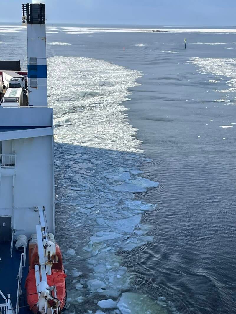 Blauer Himmel, und immer noch Eisschollen auf der Ostsee. Aber keine Eisberge. Herrliche Fahrt durch die Schären kurz vor Helsinki.......