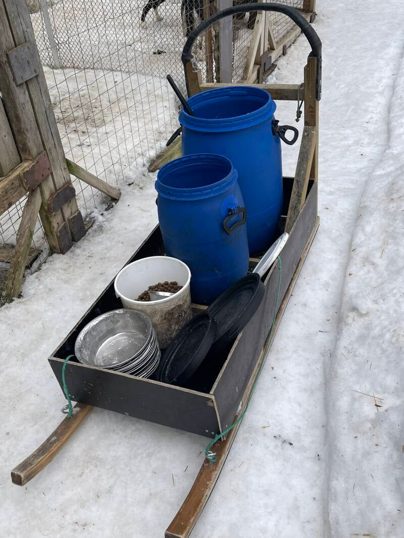 Dann wurde der Schlitten gepackt und ab ging es zu den Hundezwingern. In zwei Anlagen werden ca. 130 Hunde gehalten.