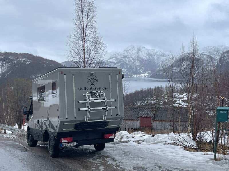 In Fauske tanke ich und suche nach einer Möglichkeit meinen Wassertank aufzufüllen. Der und auch die Reseve ist fast aufgebraucht (200 Liter). Bei Minusgraden waren bisher alle Entnahmestellen geschlossen, die Quellen gefroren.